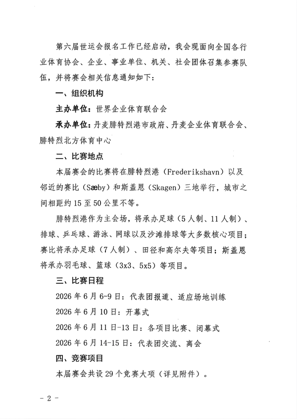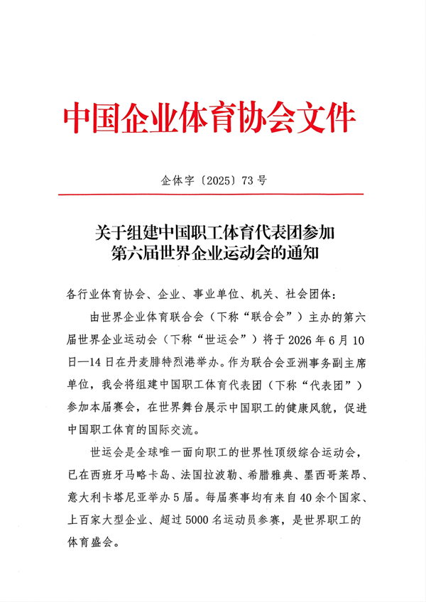 关于组建中国职工体育代表团参加第六届世界企业运动会的通知