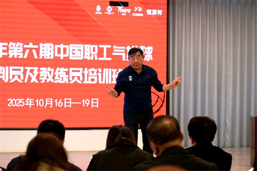 10月17日,由中国企业体育协会主办;中国企业体育协会排球专业委员会与辽宁盈今体育科技有限公司共同承办;盘锦市气排球协会、恒佳体育文化(广东)有限公司协办的2025年第六期中国职工气排球裁判员及教练员培训班于辽宁省盘锦市开班。