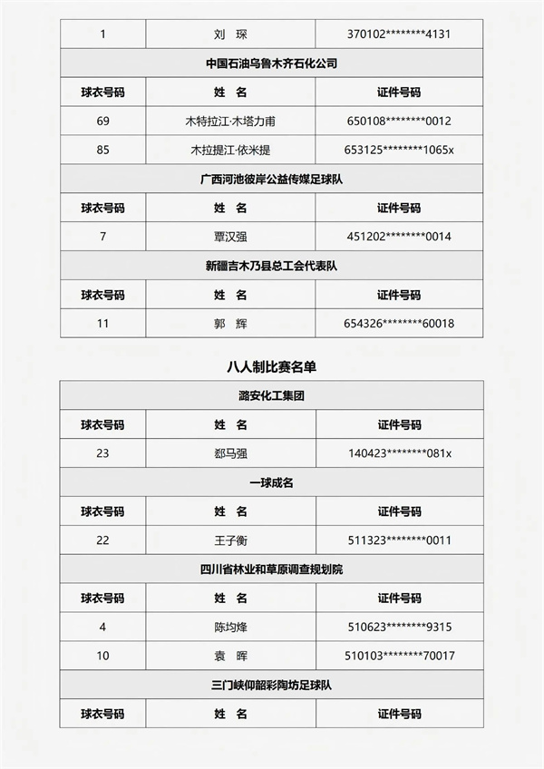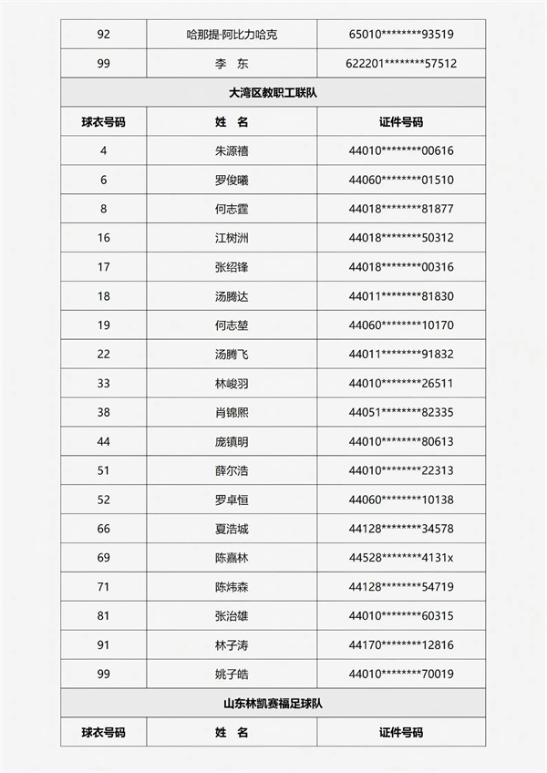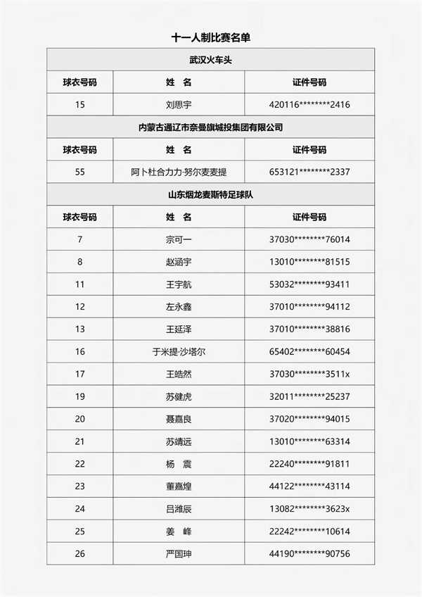 现对第二批次17支参赛球队运动员的资格审核,根据《赛事规程》及《报名通知》规定,现进行公示。公示期为三天,自发布之日计算。公示期结束后,组委会不再受理关于运动员资格的举报或仲裁申请。