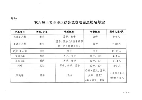 关于组建中国职工体育代表团参加第六届世界企业运动会的通知