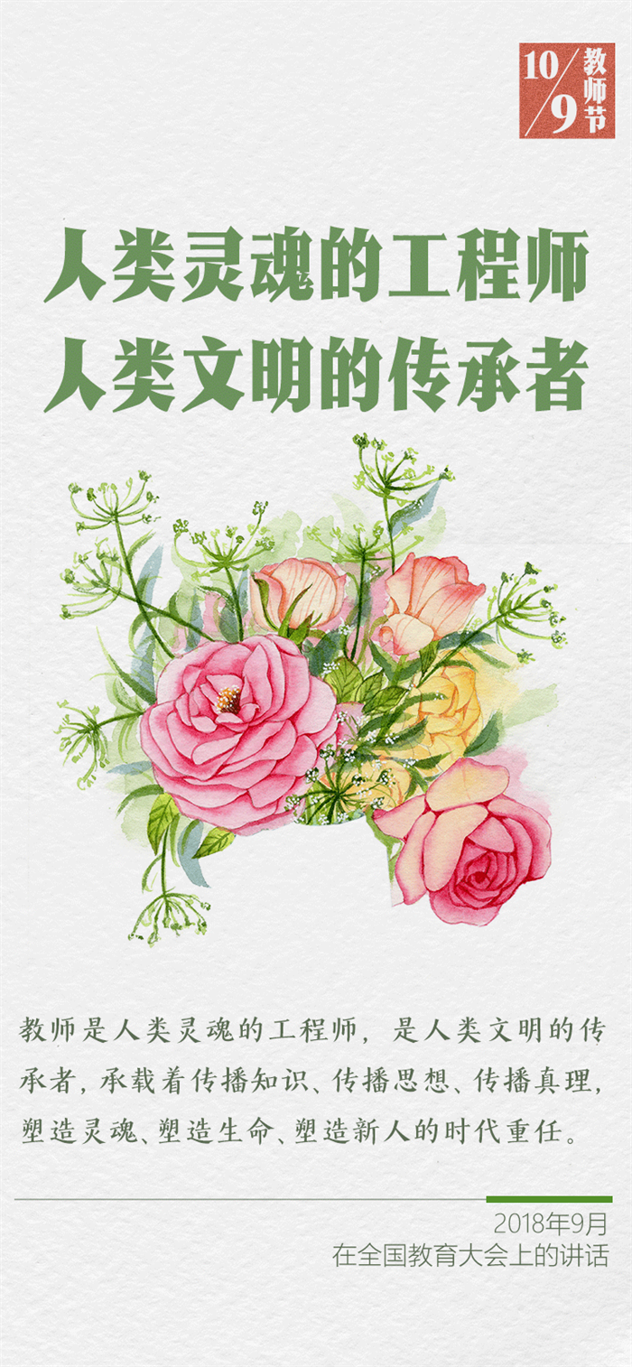 在第四十一个教师节到来之际,习近平总书记给全国特岗教师代表回信,提出殷切希望,并向全国广大教师和教育工作者致以节日祝贺和诚挚问候。